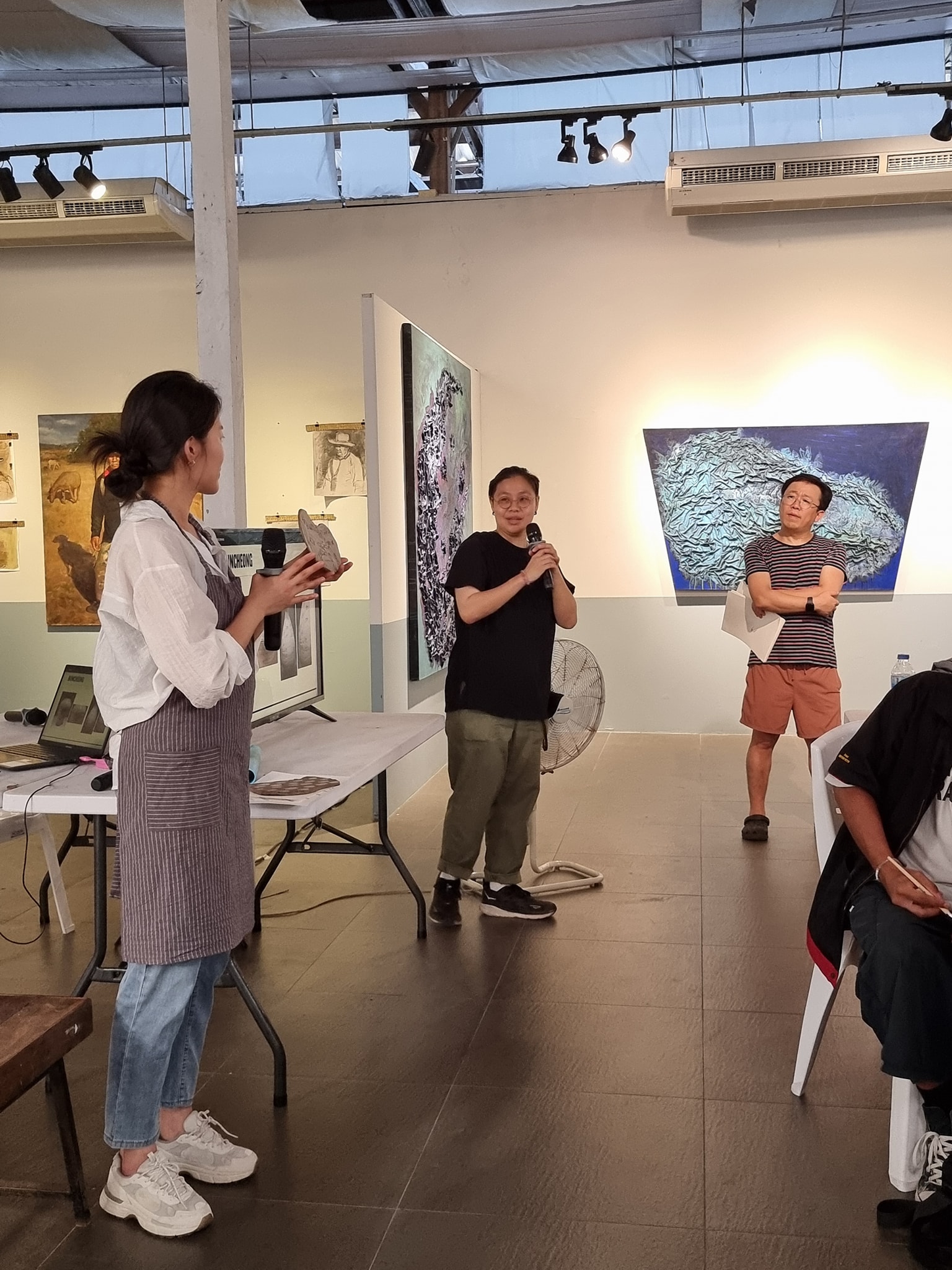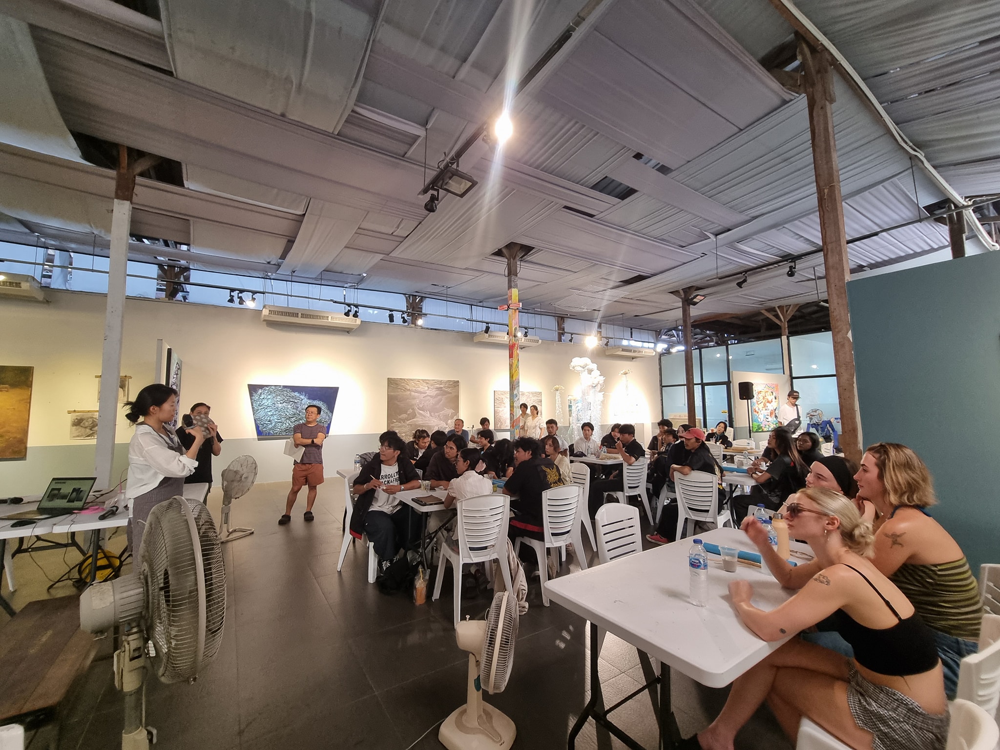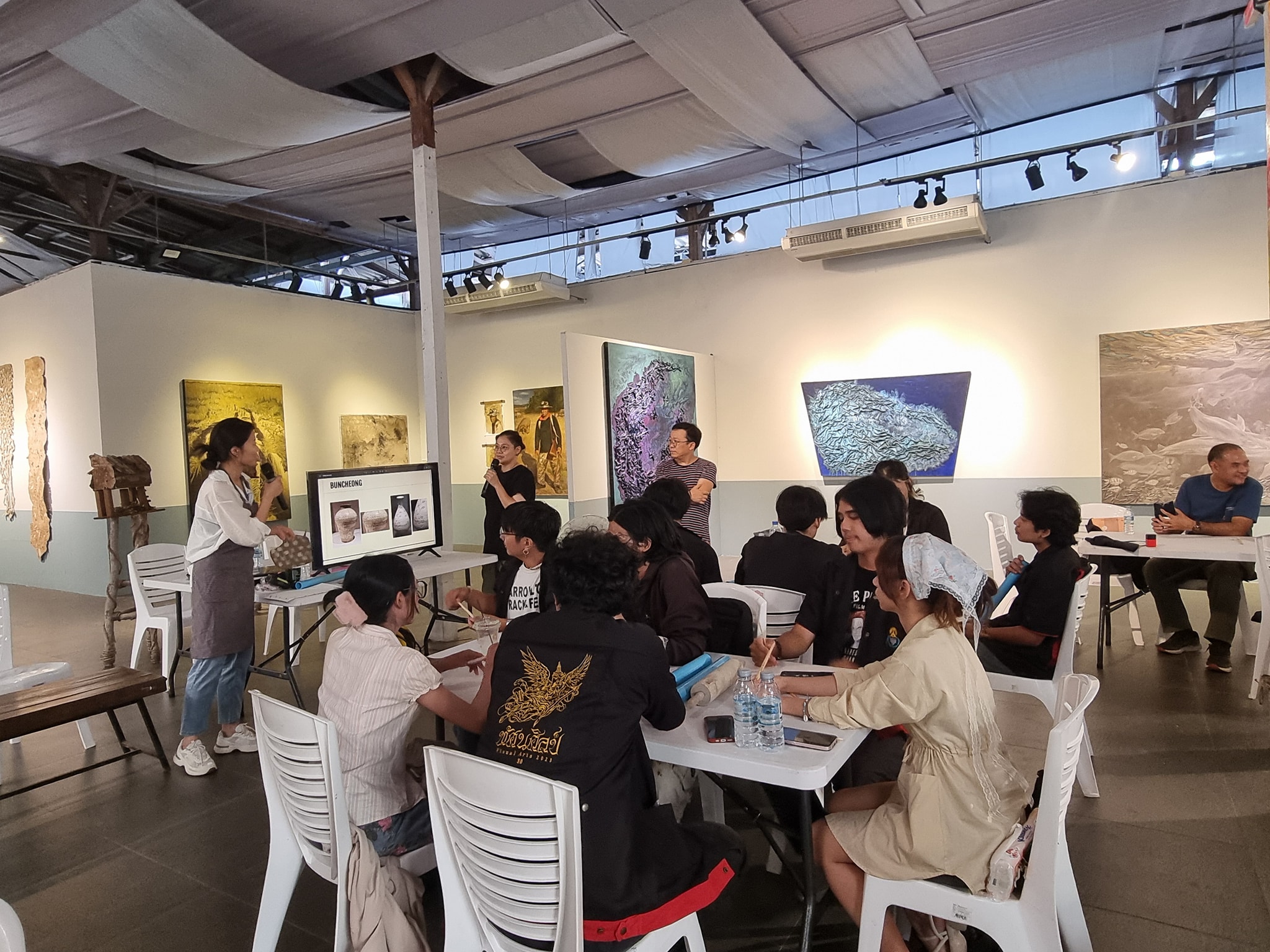 นักศึกษาสาขาวิชาทัศนศิลป์ คณะศิลปกรรมศาสตร์ มหาวิทยาลัยราชภัฏสงขลา เข้าร่วมโครงการสัมมนาเชิงปฏิบัติการ โดยศิลปินเกาหลีใต้ “เทศกาล ศิลปะสงขลา เชื่อมโยงรุ่นสู่รุ่น ครั้งที่ 3 ปี พ.ศ. 2568” ภายใต้แนวคิด “Art Up: ศิลปะ เปลี่ยน พื้น คืน ขยับ” ณ หอศิลป์สงขลา วันที่ 31 กรกฎาคม 2568